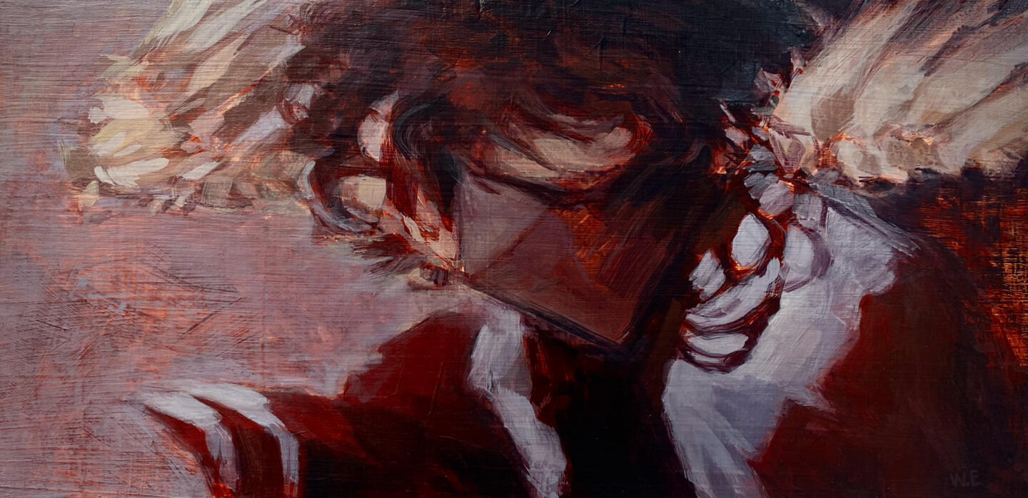 "Goodbye, Hero" 2024. Acrylic on canvas, 8x10.
